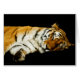 Uma fotografia de um Tigre Amur dormindo sobre um fundo preto. Também conhecido como Tigre Siberiano, o Amur está muito perto da extinção na natureza. Restam apenas algumas centenas. O tigre Amur foi extinto na Coreia do Sul em 1922, desde então houve esforços de conservação para salvar essa espécie. Os nossos esforços para salvar esta espécie parecem estar a falhar com a população de tigres a continuar a diminuir devido à caça e à perda de habitat.
