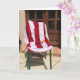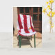 Este lindo cartão de cumprimentos de verão apresenta uma colorida toalha de banho listrada de vermelho e branco sobre uma cadeira num pátio no sul da França. Há um par de óculos de sol na cadeira e uma laranja Clementina fresca. Lindíssimo para qualquer ocasião.