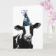 Uma vaca de leiteria preto e branco bonito, vestindo um chapéu sparkly azul do partido da estrela em sua cabeça. Esta cara ou menina querem party até que as vacas venham em casa - adicionam sua própria piada ou chalaça engraçada da vaca no interior, ou suprimem do texto mostrado para deixá-lo vazio para a escrita em sua mensagem personalizada mais atrasada. Isto faria o cartão ou o convite perfeito para todo o para baixo recolhimento do estilo do fazendeiro do país de origem!