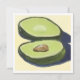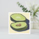 Brilhante, alegre e cheio de cores frescas, este cartão de cumprimentos apresenta uma pintura acrílica original de um abacate fatiado contra um fundo amarelo quente. Os tons suaves de verde e a sombra ousada criam um visual moderno e divertido, perfeito para amantes de comida e fãs de arte colorida.