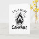 Design de acampamento que diz: a vida é melhor perto da fogueira.