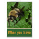 Quando você sair, eu vou ME perder sem você. Depressa! Bela fotografia da natureza do quintal, em detalhes espantosos, de uma abelha deslumbrante que repousa sobre uma folha de balão verde profunda. Uma nova decoração de verão que adiciona um toque adorável ao seu sentimento.