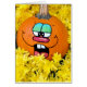 Rosto engraçado pintado com abóbora de outono em mães amarelas.