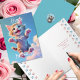 Alegrar o dia de alguém com este adorável cartão de saudação com um gatinho malhado divertido voando pelo céu com as palavras alegres "Abraços a Caminho!". Perfeito para qualquer pessoa que precise de um pouco de amor e encorajamento, o cartão se abre para revelar uma mensagem personalizável cercada por encantadoras pegadas de gatinho rosa e azul ao longo das bordas. A parte de trás do cartão adiciona um toque final doce com a imagem pacífica da cabeça de um gatinho dormindo espiando de um círculo contra um fundo azul calmante. Seja para um amigo, membro da família ou qualquer pessoa que precise de um sorriso, este cartão é uma maneira encantadora de mostrar que você se importa!