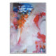 Arte abstracta da pintura original por peixes de John do artista. As texturas ásperas do vermelho, as brancas e as azuis e os cursos expressivos da escova dão a este cartão um olhar "artística"