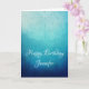 Cartão de saudação de aniversário com um padrão bonito de meia mandala azul com uma cor gradiente de fundo de azul-marinho claro que transforma em azul-marinho escuro. Tranquilo e sereno.