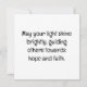 O cartão de saudação "Shine Your Light" é perfeito para enviar mensagens de encorajamento e fé. Apresentando uma pessoa em um penhasco com feixes de luz quebrando as nuvens, ela simboliza a esperança e a orientação que a fé proporciona em tempos incertos.