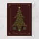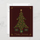 Características deste design elegantes uma árvore de Natal acolchoada com os ornamento jóia-tonificados que decoram a e presentes embaixo, cercado toda por uma beira filigrana do ouro delicado com as jóias nos cantos.