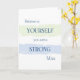 Mesmo os homens precisam de uma pequena palmadinha nas costas de vez em quando, para que vocês possam encorajar e apoiar aquele homem especial em sua vida com este cartão masculino verde claro e azul-céu pintado com um fundo branco estrelado contendo tipografia azul escura que lê como um lembrete gentil, "Acredite em si mesmo, você é um homem forte." Deixou o dentro vazio para adicionar seus próprios sentimentos... perfeito para muitas ocasiões, incluindo suporte ao cancer. Design também disponível para uma Mulher Forte em cor rosa e pêssego.