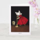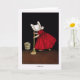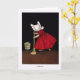 Sexta-feira limpava tradicional o dia para a senhora da casa. Sunbonnet Industrious Sue no vermelho varre e esfrega de modo que possa ter uma casa limpa para visitantes do chá-tempo.