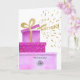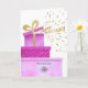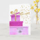 Lembre os clientes, funcionários e parceiros de negócios que você está pensando neles com nosso cartão de aniversário personalizado com logotipo original em aquarela. Apresenta uma pintura original em aquarela de três caixas de presente rosa com elementos dourados falsos e confetes saindo da caixa superior, com o texto Feliz Aniversário. Por favor, note que o dourado neste design é uma impressão de cor bege-amarelada e não é uma folha de ouro real. Substitua a imagem "seu logotipo aqui" pelo seu logotipo personalizado e adicione o texto da frente e do interior. Este cartão caloroso e divertido certamente trará um sorriso ao rosto de qualquer pessoa. Configurado como um modelo para personalização online fácil. Esta cor é perfeita para meninas e mulheres, o design também está disponível em outras cores: verde, cinza, roxo e azul.