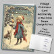 Natais vintages Gouache Nome de Adicionar Cartão, Alterar Texto na frente e Dentro.