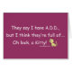 Dizem eu tenho ADICIONAR mas eu penso que são… oh olhar completo, um gatinho! Com um gato amarelo bonito do gatinho. Transtorno de deficit de atenção engraçado e cómico. O fundo roxo pode ser mudado a toda a cor que você quiser.
