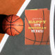 Um cartão de aniversário para fãs ou jogadores de basquete, este cartão tem o aspecto de uma bola de basquete e pode ser personalizado com qualquer nome, idade ou adjetivos. Dentro apresenta uma bola na esquina que passa pela rede.