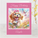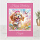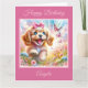 Um design fofo com um adorável cachorrinho de Cocker Spaniel em um belo prado de flores e borboletas rosa. Perfeito para o aniversário de uma criança ou cartão de "Pensando em Você".