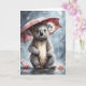 Adorável ursinho coala com guarda-chuva e flores. Alegrar o dia de alguém com este cartão de cumprimentos em branco para aniversário, aniversário de casamento, novo bebê, agradecimento, simpatia, etc.
