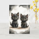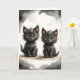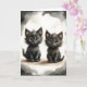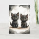 Cartão Adorável Par de Gatinhas Pretas Retrato Branco