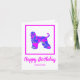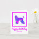Silhueta de cão de caça afegão em um padrão de abstrato moderno rosa-quente e azul brilhante e quente. Um dentro de mensagem de aniversário engraçado pode ser mudado para qualquer coisa que você quiser.
