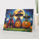 Uma cena divertida de Halloween, com um cachorrinho malicioso a espreitar-se de uma abóbora esculpida, rodeada por vibrações de outono assustadoras. Com um charme viscoso e cores de outono, é o toque perfeito de humor para a estação.