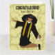 Esta carta de formando única apresenta uma moça afro-americana com um vestido preto, boné e um diploma. Pegue este cartão para um formando orgulhoso que você conhece.