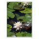 Um lírio d'água florescente sai da água entre as almofadas esperando por um sapo ou libélula residente.