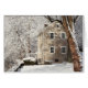Cartão Ainda casa com árvores nevado