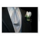 Um smoking preto com boutineer.