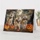 Libere o espírito assustador com esta design sombria do Dia das Bruxas apresentando um bando de cachorros sob um céu escuro e iluminado, cercado por morcegos voadores e abóboras brilhantes. Perfeito para aqueles que amam um toque de diversão terrível com seus amigos peludos!