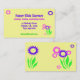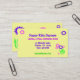 Estes cartão de visita, apropriados alegres, lunáticos para a guarda ou após finalidades da escola, características um design fantástico de flores cor-de-rosa e roxas com folhas verdes e de hastes em um fundo do amarelo de manteiga na parte dianteira e na parte traseira. Todo o texto pode ser personalizado para serir suas necessidades.