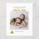 Cartão de Natal Glitter Joyful com fotos de Natal com árvores brilhantes e fotos na frente e no verso. Substitua pelas fotos clicando no botão "Personalizar" e adicione a mensagem e o nome personalizados no verso