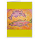mostra sardas e sardas de seatrout na placa a partir de um esboço colorido de lápis de cor d'água! também com o slogan "algo peixe"