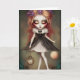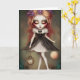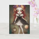 Alice Illustration trabalho de arte de acolhendo cartão de Ricaso - uma ilustração de Alice segurando um relógio, ela tem flores roxas em seu cabelo, ela está vestindo um vestido de cinza. Ilustração Copyright © Ricaso