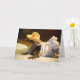 Meu jacaré em um vestido e chapéu em um cartão de saudação e um palco correspondente