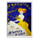 Amandines de Provence. Biscoitos H. Lalo/L. Cappiello. Poster que mostra uma mulher que come biscoitos de amêndoa. Leonetto Cappiello (1875 - 1942) era um desenhista italiano da arte do poster que vivesse em Paris.He é chamado agora frequentemente "o pai da propaganda moderna" devido a sua inovação no design do poster.