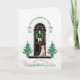Caracterizando um laboratório amarelo doce (labrador retriever) que veste um laço cor-de-rosa das bolinhas! Um pátio de entrada coberto clássico decorado para os feriados, caracterizando árvores de Natal com as estrelas que flanqueiam a porta preta elegante, uma grinalda do pinho com arco cor-de-rosa do guingão, e lanternas cobriu com rosas e azevinho. Ao estilo de elegante clássico moderno da casa da quinta | da magnólia |. 3 CORES DA XADREZ PARA O INTERIOR ESTÃO NO DESIGN (preto como mostrado, verde escuro, ou no rosa - apenas edite e esconda as imagens que da xadrez você não quer).