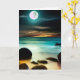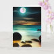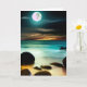 Lua de cheio sobre o oceano ondas numa praia arenosa. Carteira doce para um aniversário, Dia de os namorados ou uma ocasião romântica para um namorado ou namorada.