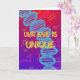 Expresse a singularidade da sua improvável história de amor com este cartão colorido com uma dupla hélice de DNA, salpicado de Dopamina, Ocitocina e Serotonina - três neurotransmissores mais associados ao amor!