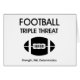 É época de futebol e hora dos jogos começarem. Traga uma ameaça tripla de futebol; força, habilidade, determinação para a sessão de prática, jogo de futebol ou em casa. Excelente para treinadores, jogadores, pais e fãs de xixi para segundo grau para faculdade para profissionais. Gráfico limpo e forte em preto e branco.