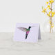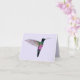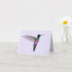 Cartão de saudação do vazio com um Starfrontlet Hummingbird com garganta azul sobre fundo roxo claro.