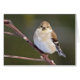 Fotografia de uma fêmea americana Goldfinch empoleirada num galho num jardim de inverno.