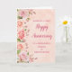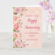 Feliz cartão de aniversário de casamento para a amiga e seu marido com rosa de água rosa elegante e verde-primavera, com um padrão de ouro falso rosa.