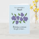 Diga a sua amiga como ela é maravilhosa e como você a celebra. Este cartão de aniversário tem violetas bonito na frente com um fundo azul suave. Simples, sincero e sincero, este cartão será perfeito para enviar os seus desejos de aniversário.