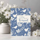 Cartão de aniversário para um amigo especial apresenta um padrão design de pássaros e flores em azul e creme, e um sentimento sincero, "Com amor a um amigo especial."