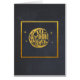 Um cartão de cumprimentos bonitinho. Um ditado bonito: Amo-te à lua e de volta. Tipografia romântica com lua de ouro escrita em uma fonte fofa e peculiar. O fundo é uma textura preta no estilo do quadro negro.