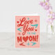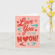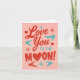 Envie seu amor para a órbita com este alegre cartão do Dia dos Namorados 'Amo Você até a Lua'! Com letras vermelhas e azuis em negrito, corações divertidos e uma reviravolta cósmica com uma lua em forma de coração, este design é perfeito para quem merece um amor fora deste mundo. Seja para um parceiro, melhor amigo ou membro da família, este cartão transmite afeto com um toque de cor e muito coração