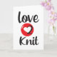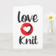 Cartão de cumprimentos Love 2 Knit. Letras grandes pretas e vermelhas. Ótimo para cartão de aniversário para pessoa que ama tricotar.
