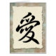 Caligrafia chinesa por amor contra uma borda caída em um fundo de esponja macia. Um excelente para qualquer ocasião.