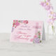 Dois anéis entrelaçados em uma cruz rosa são rodeados por flores bonitas. Hortênsias roxas e rosas cor-de-rosa com folhas verdes e algumas bagas adicionam um visual elegante a este cartão religioso floral. Deseje um feliz aniversário ao seu irmão e cunhada!