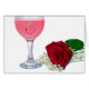Cartão anel de diamante em bebida com rosa