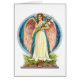 Anjo retrógrado com areia para cima, vestido de flor illy, e faixa de cabeceira com flores, e segurando um monte de lillies em suas mãos e braços, atrás do anjo está um grande disco azul com plantas, ela tem grandes asas rosa e está olhando diretamente para o observador.anjo com um vestido longo feito de pétalas de flor branca lilly com um aspecto doce, junto a um caminho rodeado por grama e vestindo sandálias marrom marrom. lindíssima pintura aquosa a aquarela de páscoa com flores tradicionais de páscoa. pastel cor azul, branca e rosa.